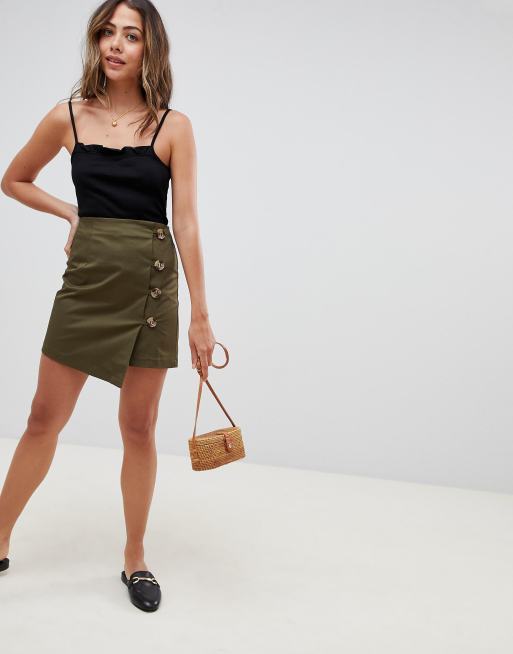 ASOS DESIGN asymmetric wrap mini skirt with button front