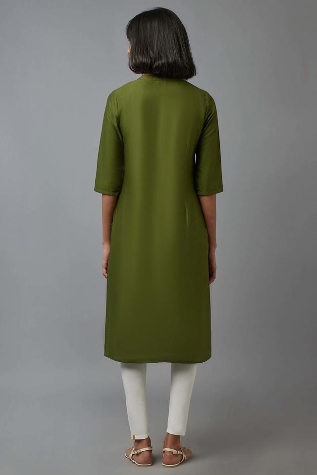 Buy AURELIA Solid Cotton Flex Mandarin Womens Straight Kurta