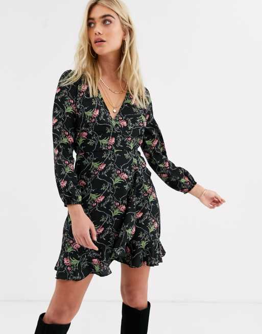 Sage And Black Printed Long Sleeve Mini Dress AX Paris