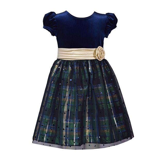 Bonnie Jean Little Girls 2T 6X Short Sleeve Stretch Velvet Plaid