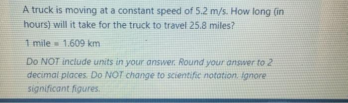 6.9 miles in km clearance, Solved A car is traveling at a constant speed of 38.0km h. Chegg clearance
