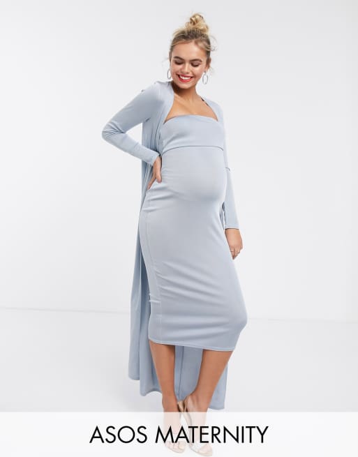 ASOS DESIGN Maternity Baby Shower ruched bandeau midi dress and drape jacket set