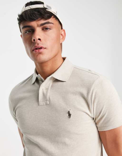Polo Ralph Lauren icon logo slim fit pique polo in beige marl ASOS