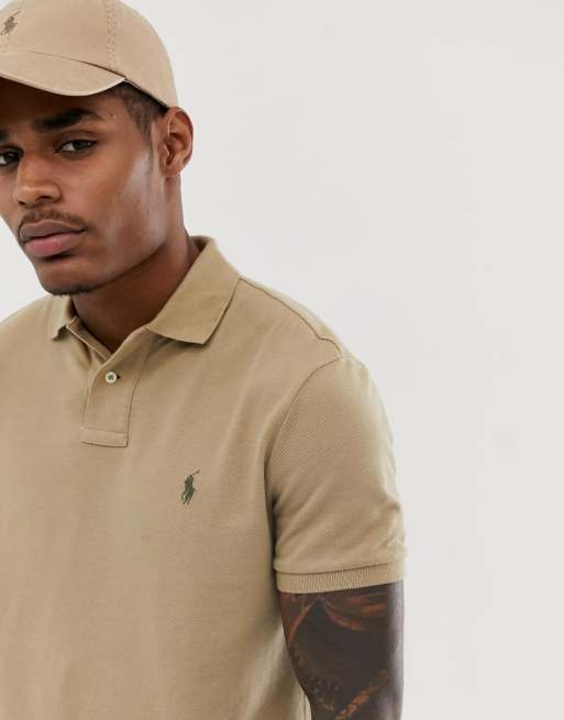 Polo Ralph Lauren player logo pique polo slim fit in beige