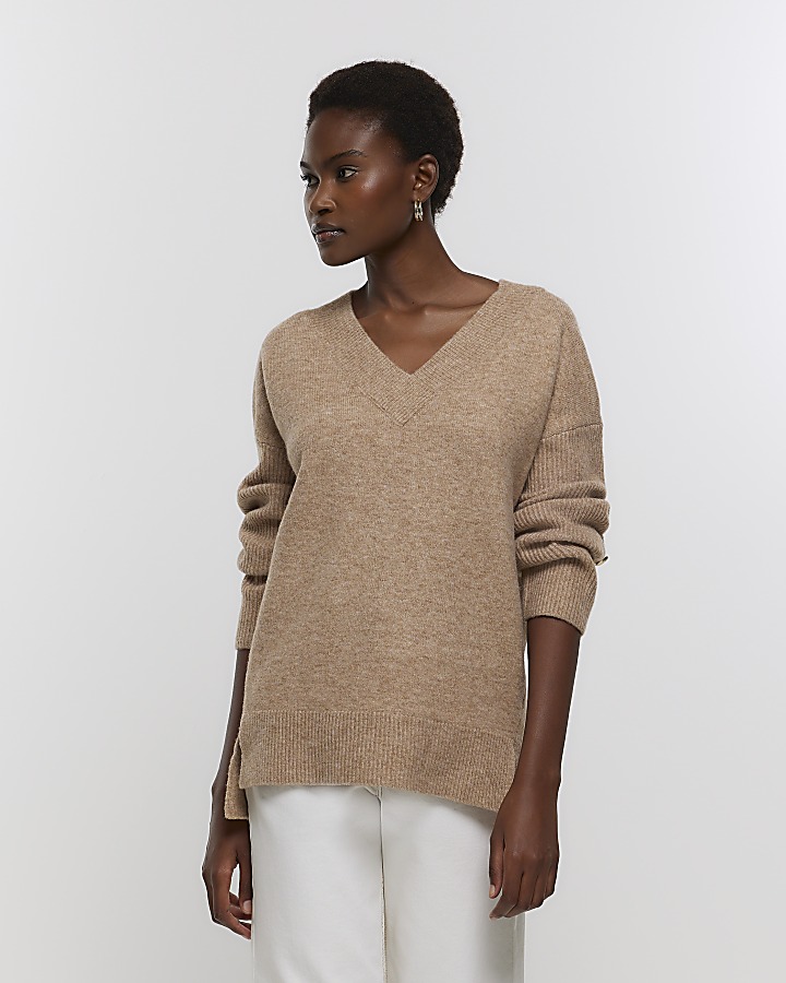 Beige v neck jumper clearance, Beige V neck sweater in pure Merino wool Beige Benetton clearance