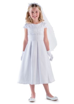 Us Angels Lace And Satin Cap Sleeve Lace Bodice Communion Dress With Box Pleat Girls 7 16