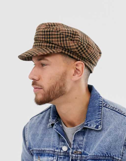 Berretto alla marinara clearance, ASOS DESIGN Cappello alla marinara a quadri marrone clearance