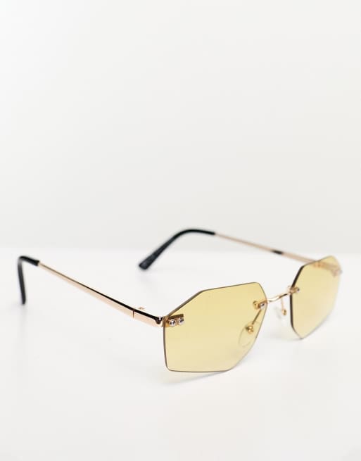 Bershka Lunettes de soleil verres hexagonaux Jaune ASOS
