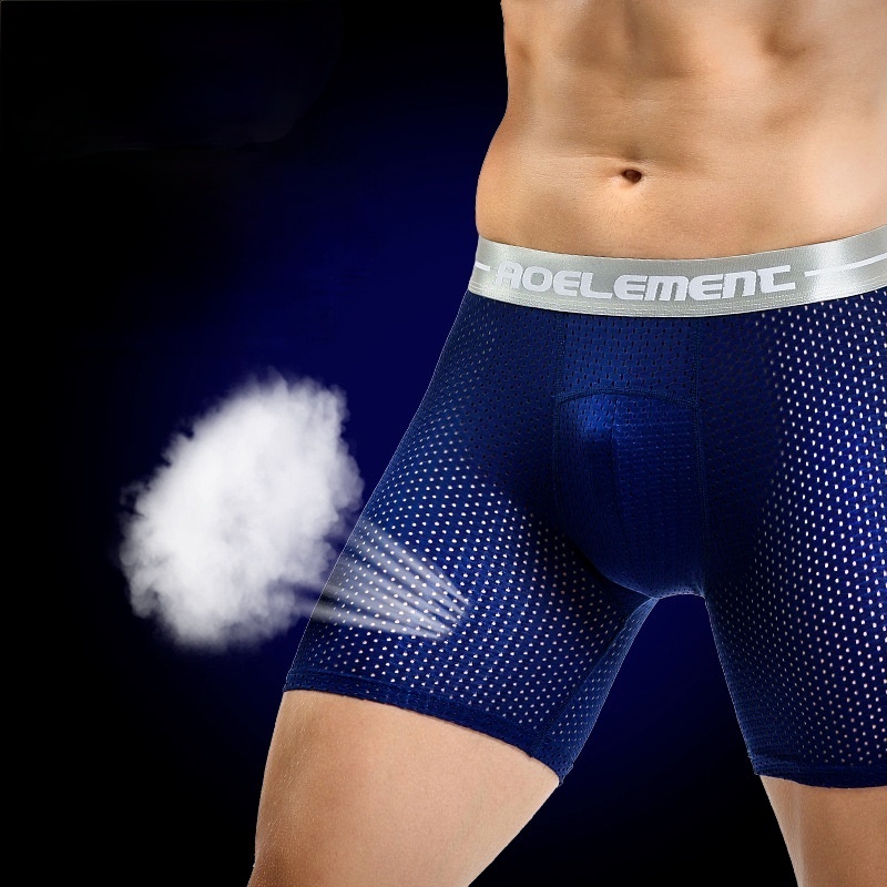 ADFASHION Ice Silk Mesh Men Plus Size Boxer Briefs Briefs Sports Running Long Underwear Mens Breathable Stretchable Underpants Boys Fashion Cotton
