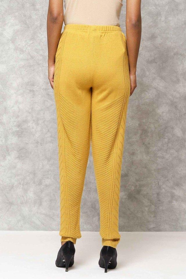 Buy BIBA Mustard Solid Knit Womens Casual Pants Shoppers Stop