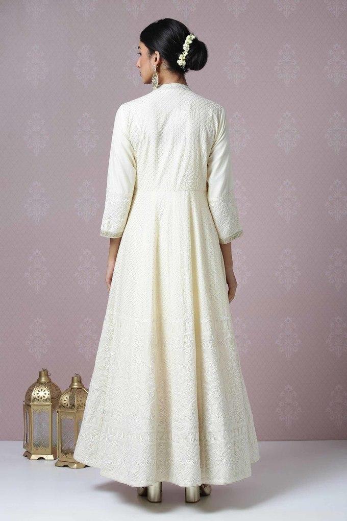 Biba white anarkali clearance, Buy BIBA Off White Band Collar Cotton Womens Anarkali Suit Set clearance