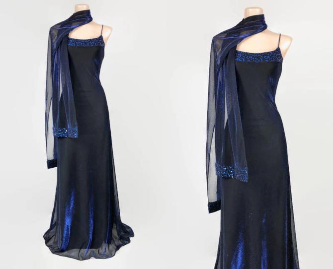 90s style prom dress clearance, VINTAGE 90s Blue Iridescent Metallic Mesh Cocktail Prom Dress clearance