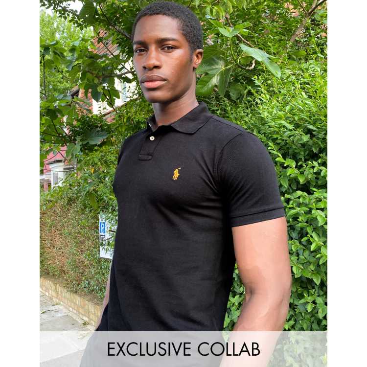 Polo Ralph Lauren x ASOS exclusive collab slim fit polo in black with gold logo