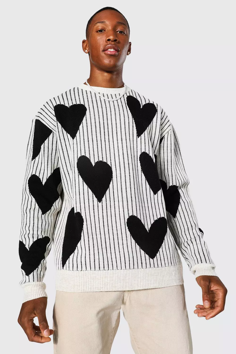 Oversized Ribbed Heart Sweater boohooMAN USA