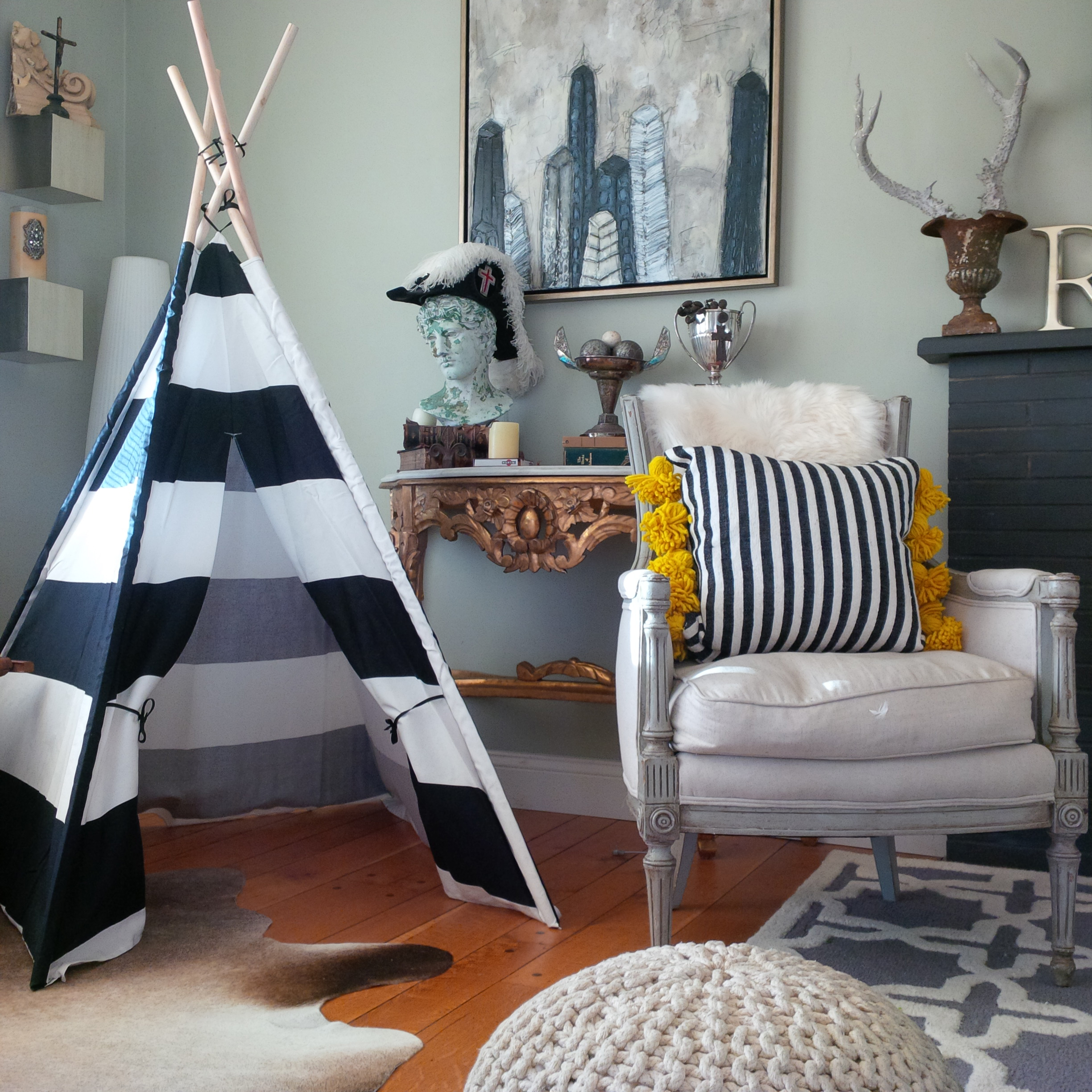 Black and white teepee clearance, Bold Stripes A Kid Friendly Living Room Transformation Brooklyn clearance