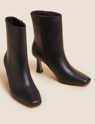 Black ankle boots thin heel clearance, Leather Kitten Heel Pointed Ankle Boots clearance