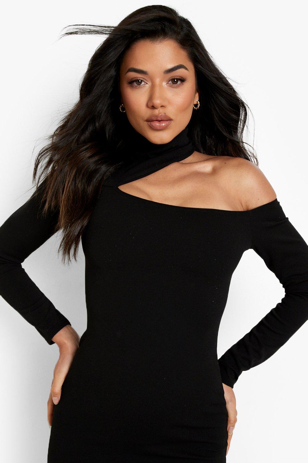 Black asymmetric sleeve cut out split leg maxi dress clearance, Women s Asymmetric Cut Out Maxi Dress Boohoo UK clearance