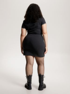 Black bodycon dress with tights clearance, Curve Leopard Print Trim Bodycon Dress Black Tommy Hilfiger clearance