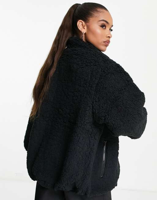 Night Addict oversized borg jacket in black