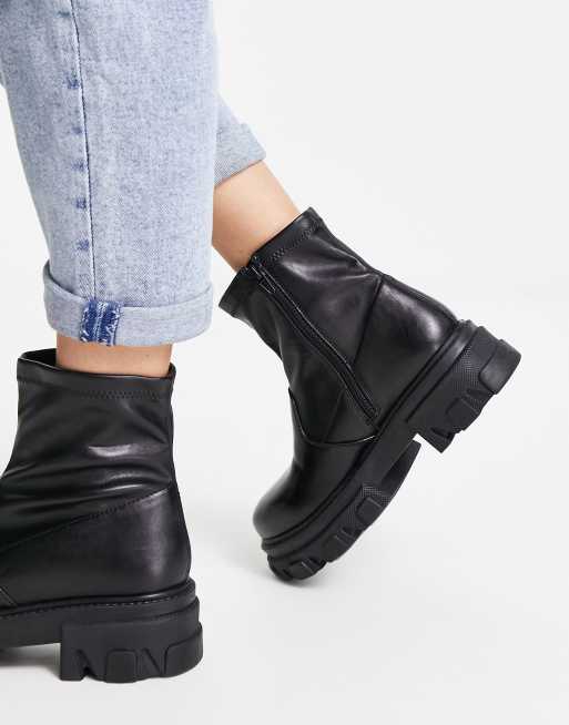 Simply Be Wide Fit pull on flat ankle boots with cleated sole in