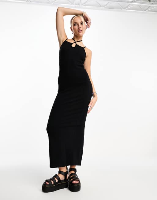 Black cross back high neck maxi dress clearance, Noisy May cross back maxi dress in black clearance