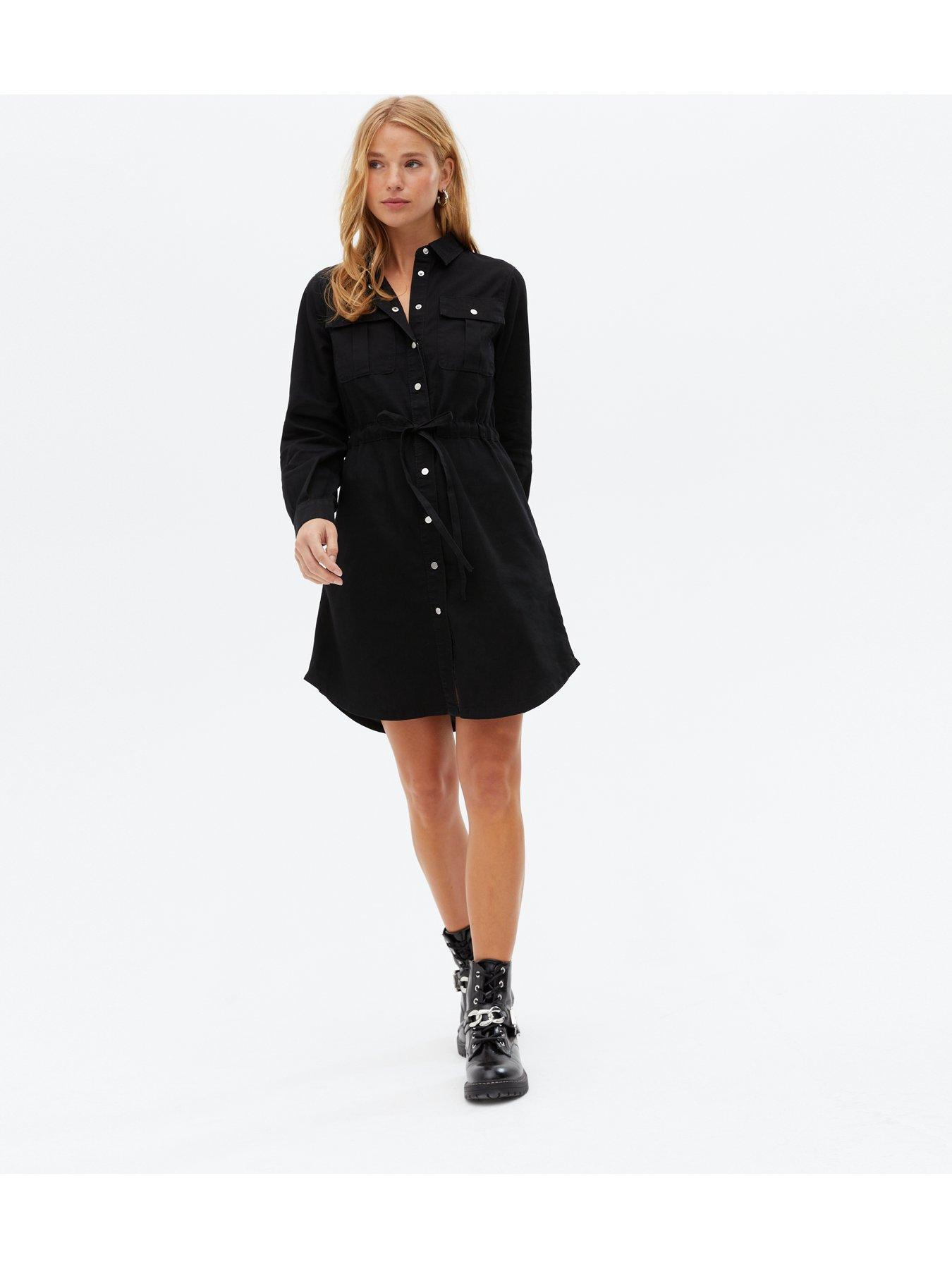 New Look Black Denim Tie Waist Mini Shirt Dress Very Ireland