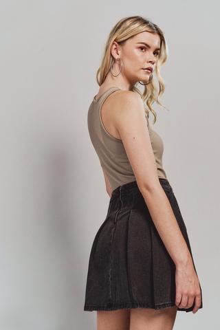 Pleated Denim Skirt
