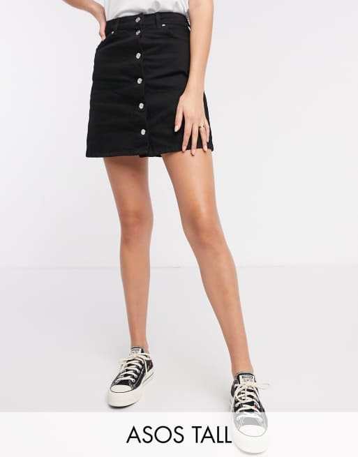 Black denim skirt tall clearance, ASOS DESIGN Tall denim button through skirt in black ASOS clearance