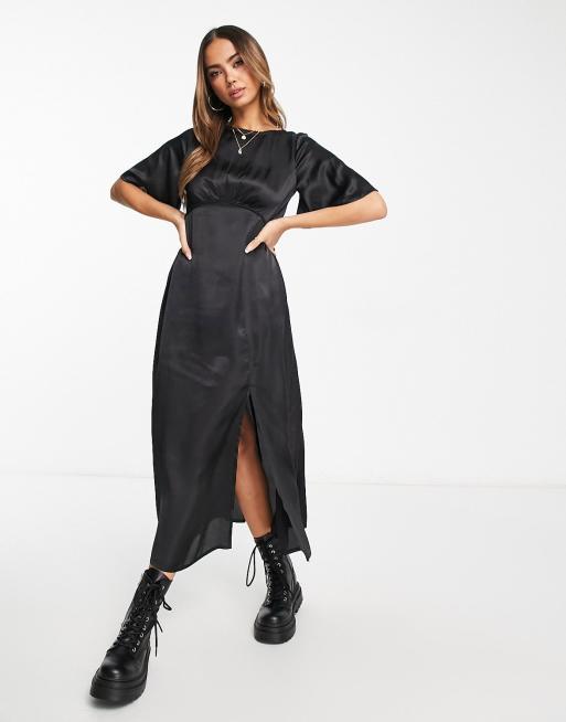 Black dress flutter sleeve clearance, Influence flutter sleeve midi dress with lace trim in black ASOS clearance