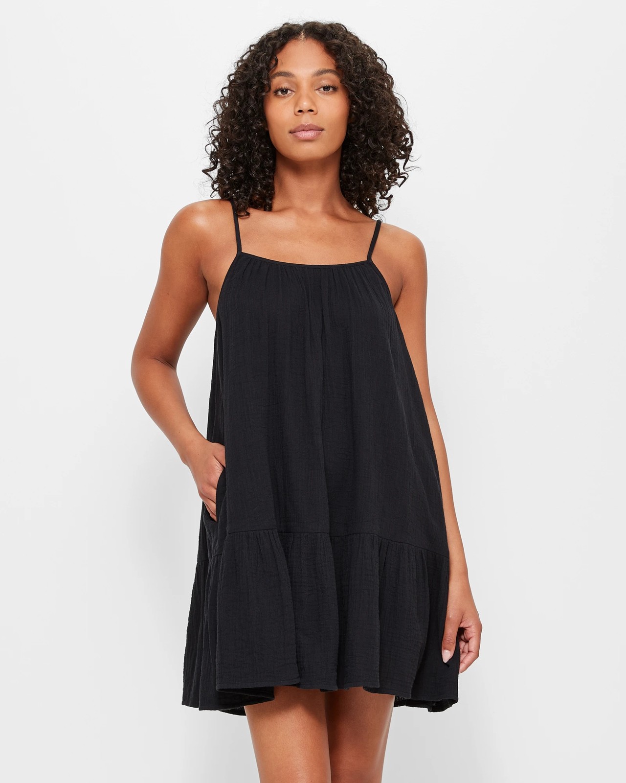 Linen Blend Strappy Midi Dress Preview Black Target Australia