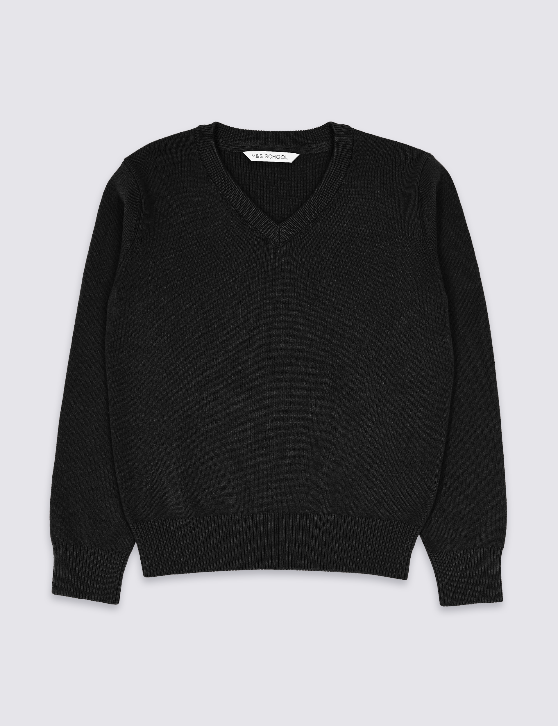 Boys Black V Neck School Jumper Girls Fleece Sweatshirt Uniform