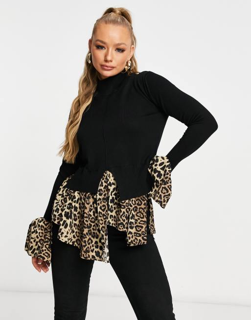 Black jumper with leopard print clearance, Contrast Leopard Print Jumper clearance