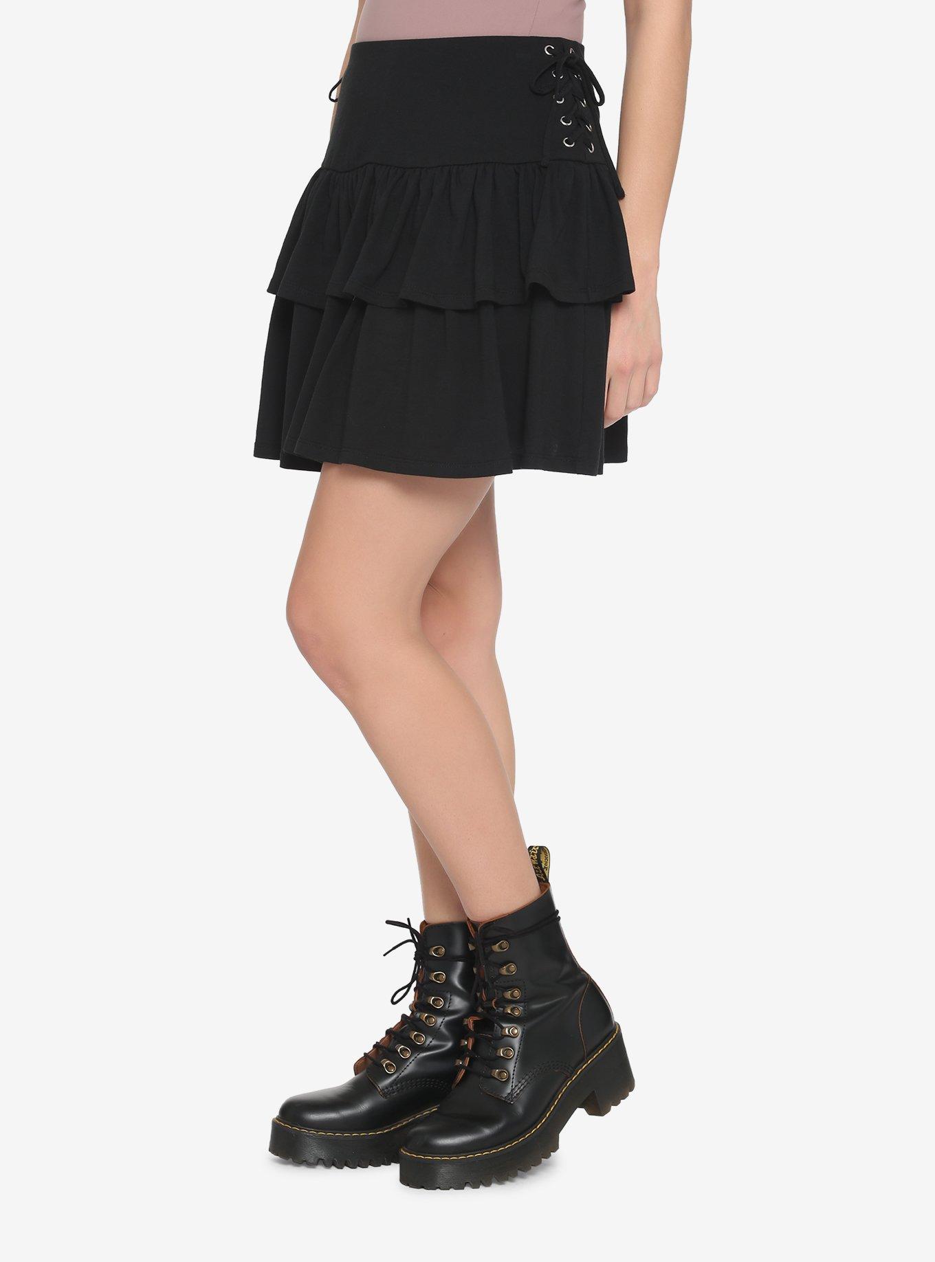 Black lace tiered skirt clearance, Black Lace Up Tiered Skirt Hot Topic clearance