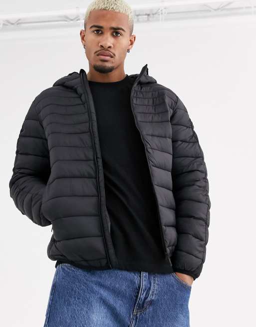 Pull Bear Join Life lightweight quilted jacket with hood in black