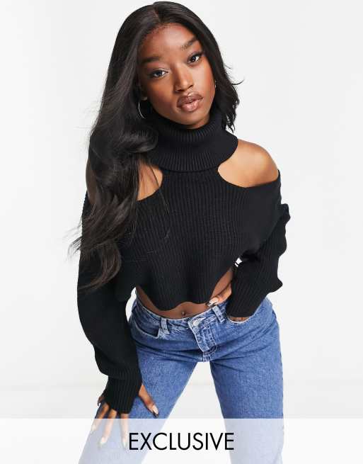 1. STATE Turtleneck Cold Shoulder Sweater in Rich Black REVOLVE