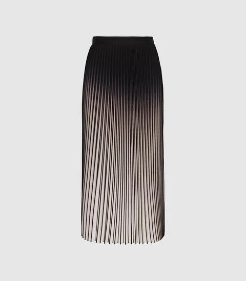 Black pleated midi skirt queen clearance, Reiss Marlie Ombre Pleated Midi Skirt In Neutral Black UFO No More clearance