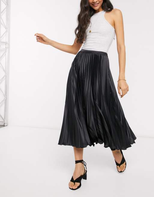 ASOS DESIGN satin pleated midi skirt in black ASOS