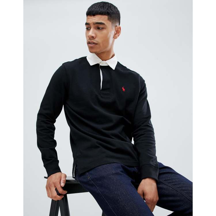 Polo Ralph Lauren long sleeve rugby polo player logo in black ASOS