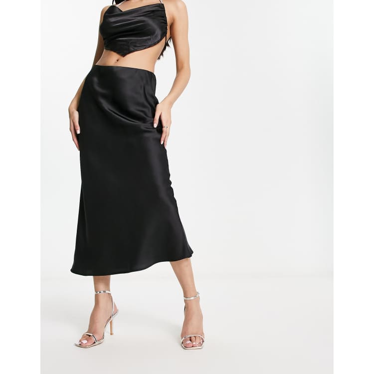 Black satin skirt mango clearance, Satin skirt with side slit MANGO clearance