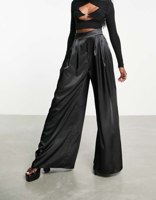 ASOS DESIGN satin wide leg trouser in black ASOS