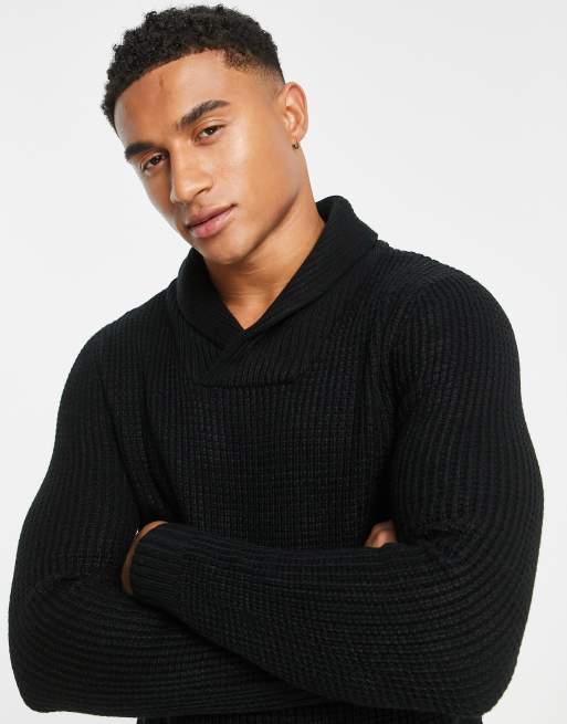 Jack Jones Essentials shawl neck knitted sweater in black ASOS