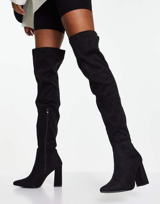 Truffle Collection Wide Fit thigh high heeled boots in black ASOS