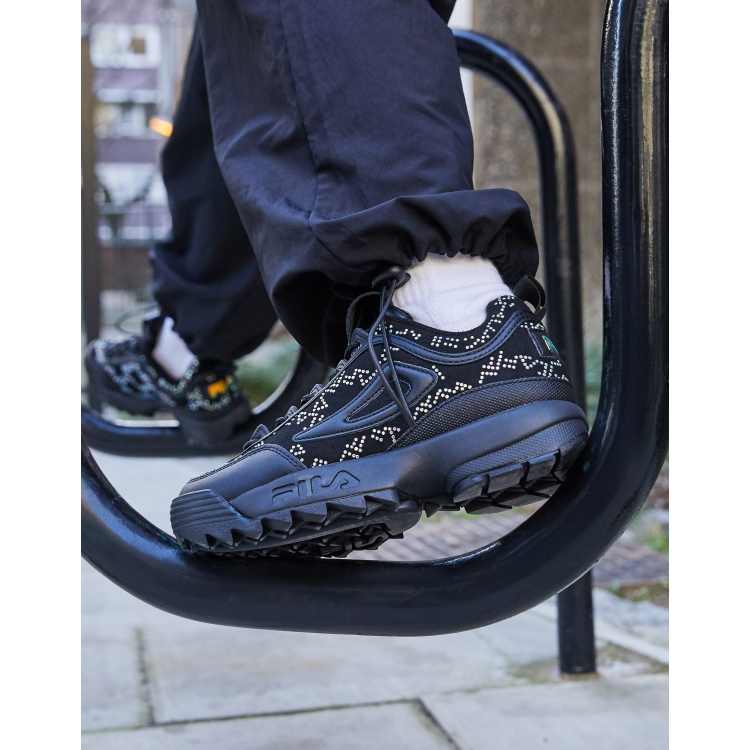 Fila Disruptor II diamante print sneakers in black velvet ASOS
