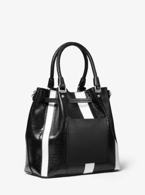 Blakely Medium Striped Leather Bucket Bag Michael Kors