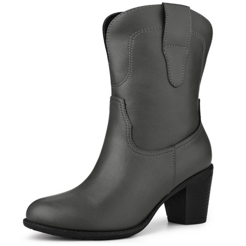 Allegra K Women s Classic Slip On Round Toe Block Heel Cowboy