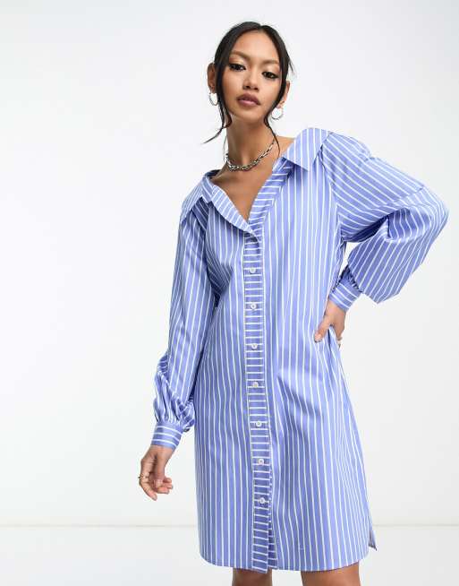 Blue Stripe Contrast Collar Oversized Shirt Dress PrettyLittleThing