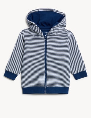 Blue and white striped zip up hoodie clearance, Cotton Rich Striped Zip Hoodie 0 3 Yrs M S Collection M S clearance