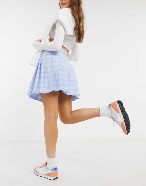 New Look mini pleated tennis skirt in pastel blue check ASOS