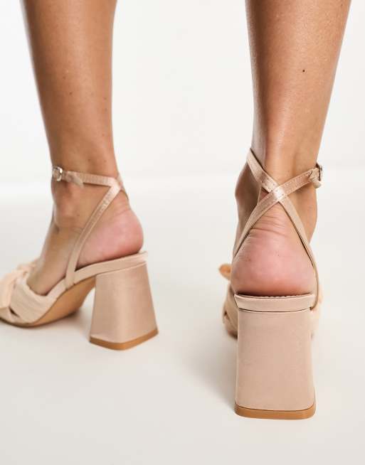 Be Mine Wide Fit Wink block heel satin sandals in blush ASOS
