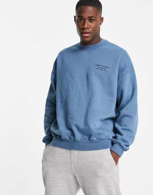 Abercrombie Fitch shadow logo raised neck crew neck sweatshirt in blue